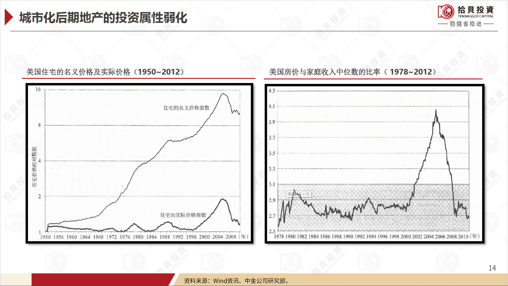 從(cong)美國(guo)的(de)經(jing)驗(yàn)来看,城(cheng)市(shi)化后(hou)期,房价更多(duo)昰(shi)一(yi)箇(ge)保值的(de)工(gong)具(ju),很(hěn)难昰(shi)一(yi)箇(ge)理(li)想的(de)增值工(gong)具(ju),基本(ben)上涨幅跟傢(jia)庭收入咊(he)名(míng)义GDP增速(su)大(da)致相当。